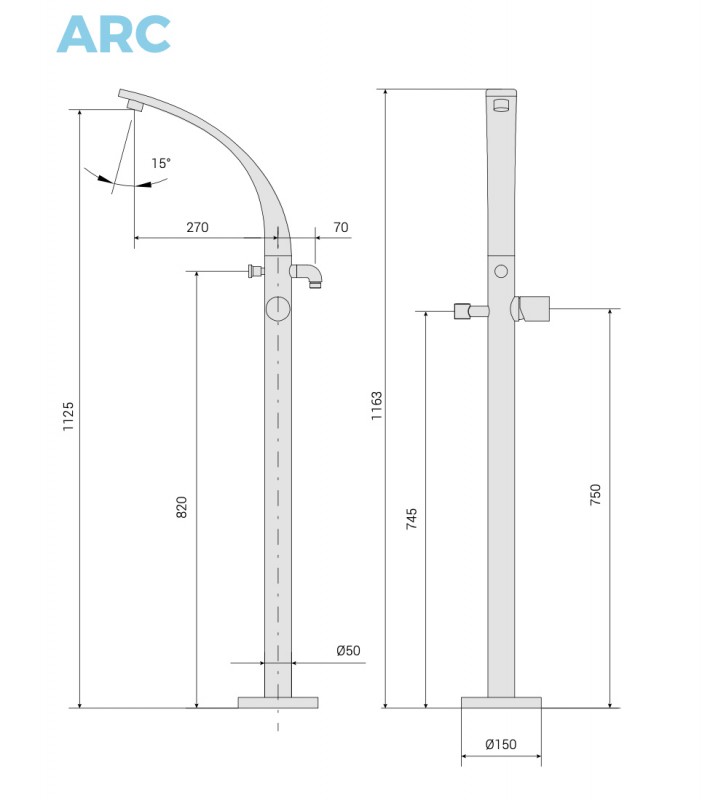Смеситель для ванной PoolSpa Arc однорычажный с ручным душем отдельностоящий монтаж на пол хром PD6000080