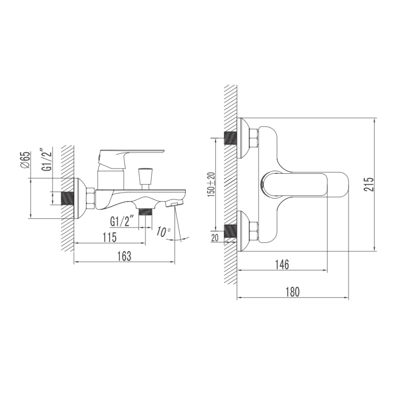 1) Смеситель для ванной Primera Nika однорычажный хром