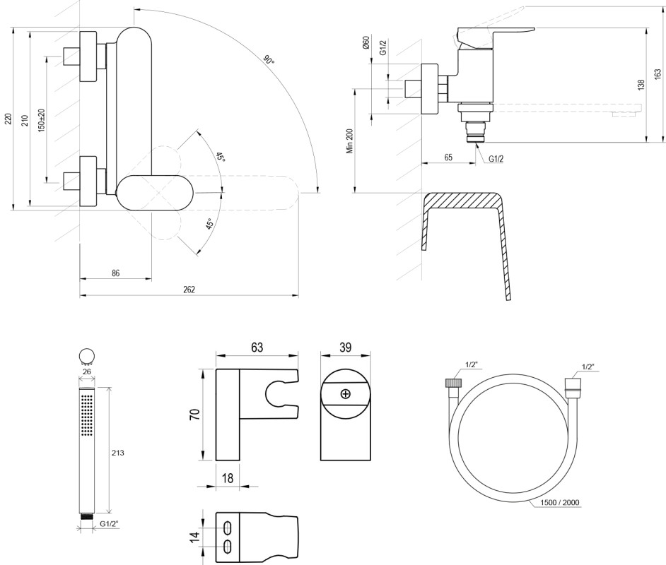 - Раздел: Комплекты смеситель для ванной с душевым гарнитуром