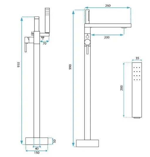 Смеситель для ванной Rea Flores напольный с душевым гарнитуром хром