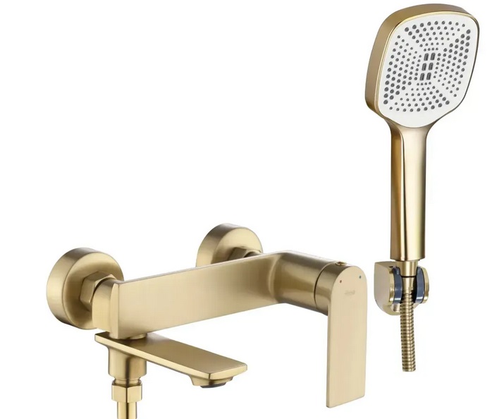 Смеситель для ванной Rea Storm однорычажный с душевым гарнитуром матовое золото