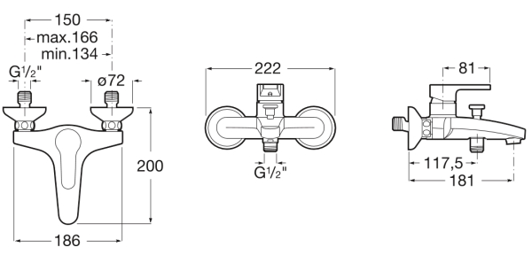1) Смеситель для ванной Roca Arola однорычажный латунь хром