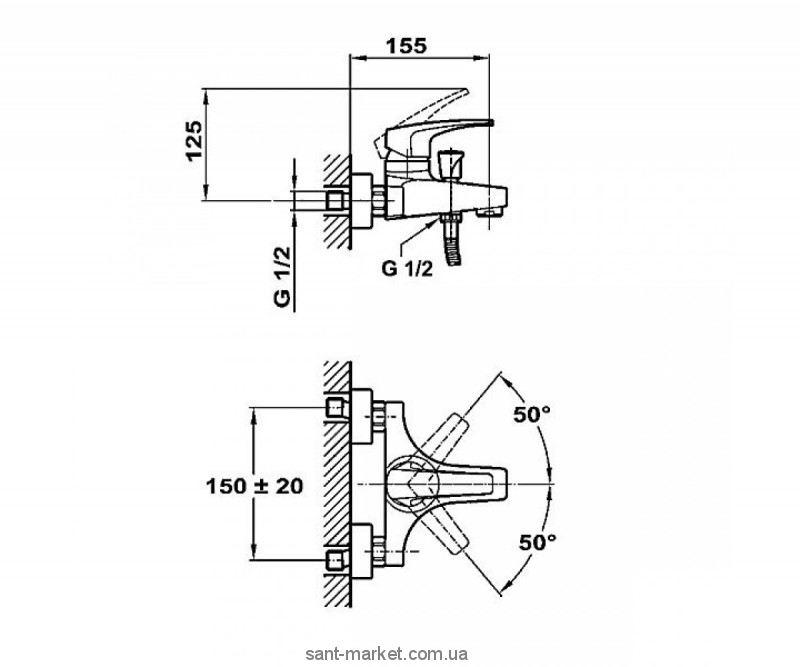 Смеситель однорычажный для ванны с душем Teka коллекция MB2 хром 40.122.02