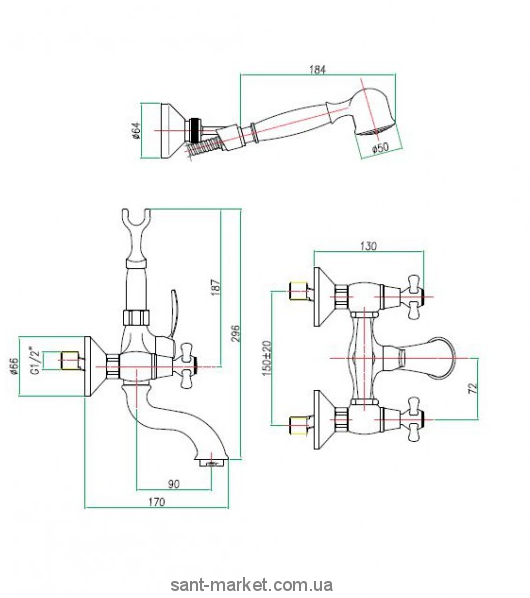 Смеситель для ванны в ретро стиле, в комплекте с шлангом и ручным душем, подставка на смесителе