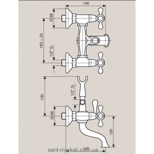 Смеситель двухвентильный для ванны с душем EMMEVI коллекция Deco Old бронза BR12611