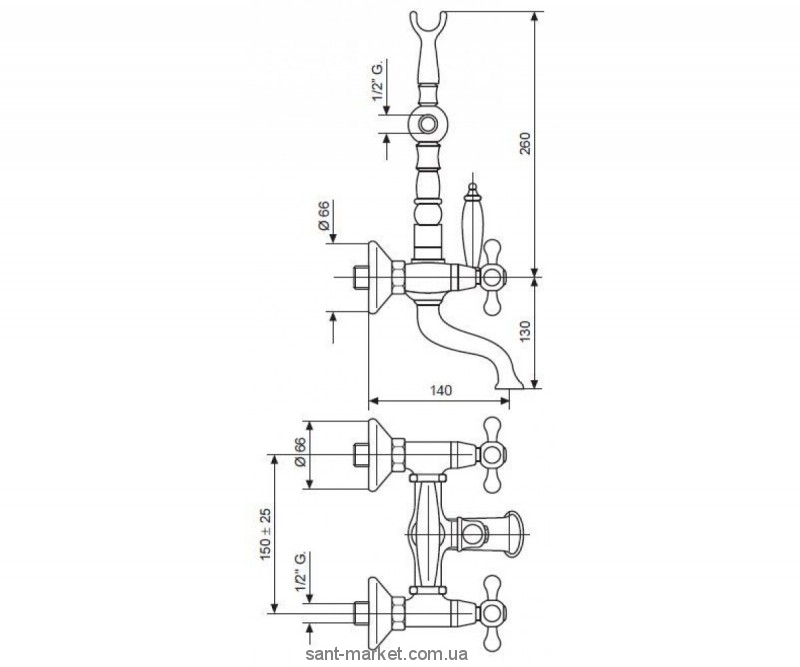 Смеситель двухвентильный для ванны с душем EMMEVI коллекция Deco Old золото OR12611