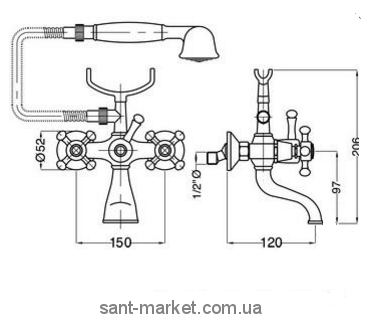 Смеситель двухвентильный для ванны с душем Bugnatese коллекция Lady золото LADDO900