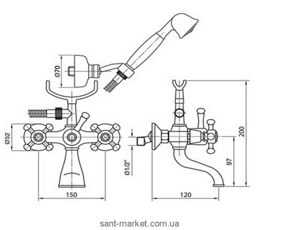 Смеситель двухвентильный для ванны с душем Bugnatese коллекция Lady золото LADDO902