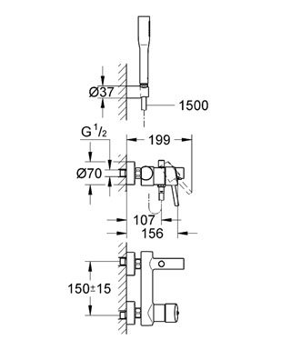 Ручной душ Euphoria Cosmopolitan (27 400 000) цилиндрической формы, настенный держатель (27 056 000), душевой шланг Relexaflex 1500 мм 1/2" x 1/2" (28 151 000)