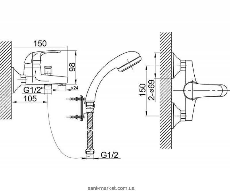 Смеситель однорычажный для ванны с душем Ferro коллекция Vasto хром BVA11