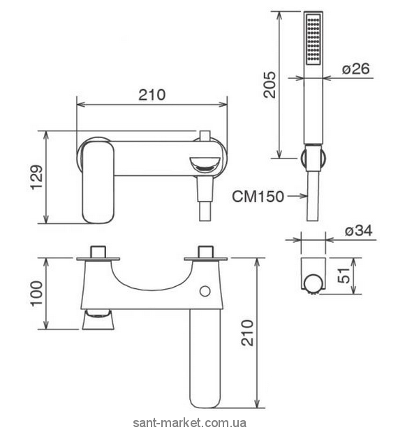 Смеситель однорычажнный для ванны с душем La Torre коллекция Laghi хром 44019 chrome
