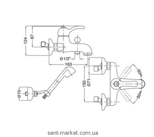 с душевой лейкой, держателем для душа, душевым шлангом 1,5 м
