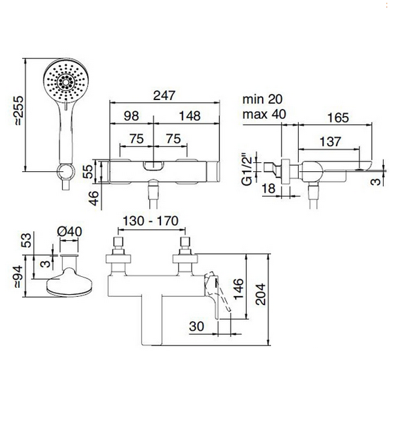 Смеситель для ванной Treemme Hask однорычажный с ручным душем хром