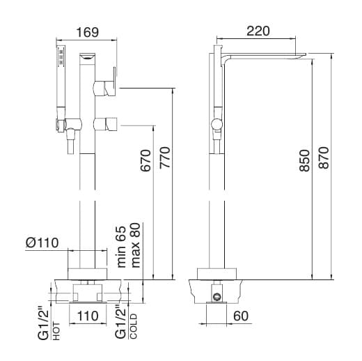 1) Смеситель для ванной однорычажный напольный (внешняя часть)