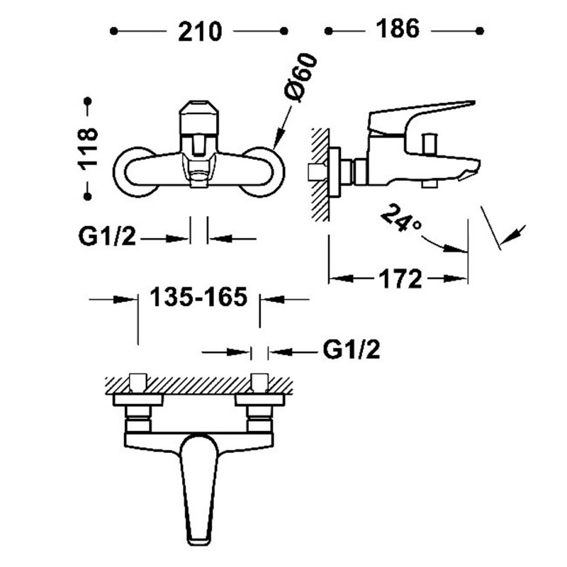 - Настенный cмеситель для ванной