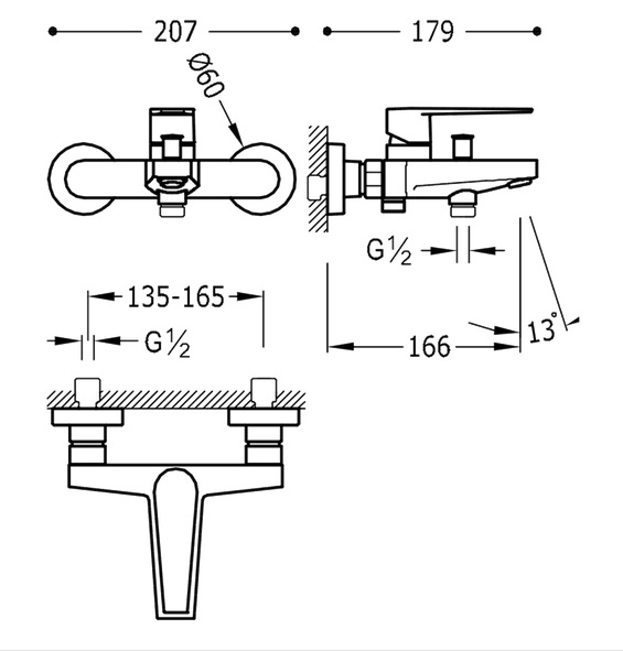 Смеситель для ванной Tres Class-Tres однорычажный с душевой лейкой хром