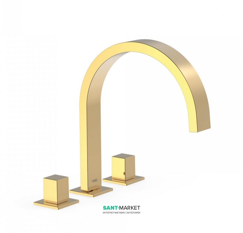 Смеситель для ванной Tres Cuadro colors двухвентильный монтаж на борт ванны золото 00810501OR