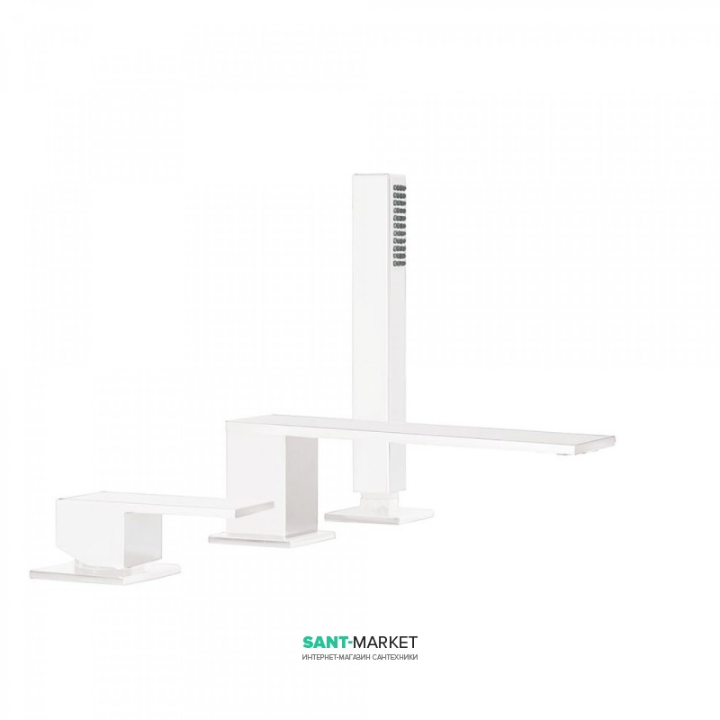 Смеситель для ванной Tres Cuadro colors однорычажный с ручным душем монтаж на борт ванны белый матовый