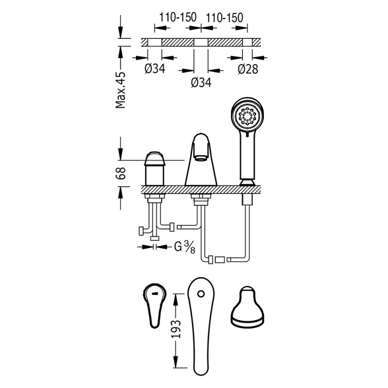 Наименование: однорычажный смеситель для ванны на 3 отверстия