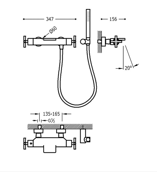 Термостат для ванной Tres Max-Tres двухвентильный с каскадным изливом хром