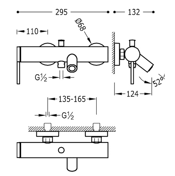 Смеситель для ванной Tres Mono-Term с ручным душем хром