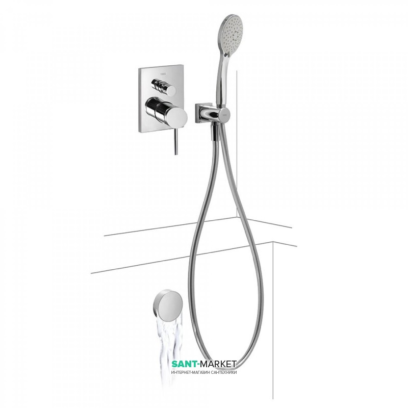 Смеситель для ванной Tres Mono-Term с ручным душем и наполнительным клапаном 06218013