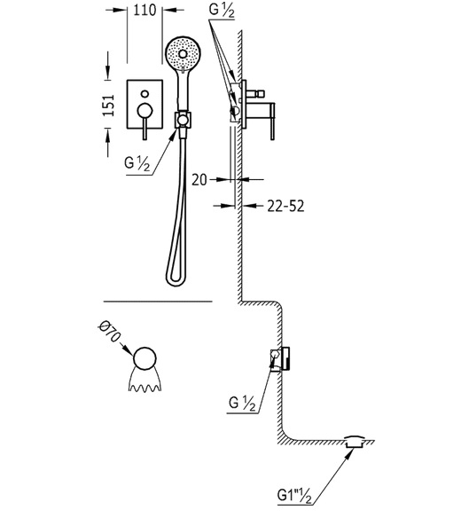Ø 110 мм с гидромассажем (5 режимов)