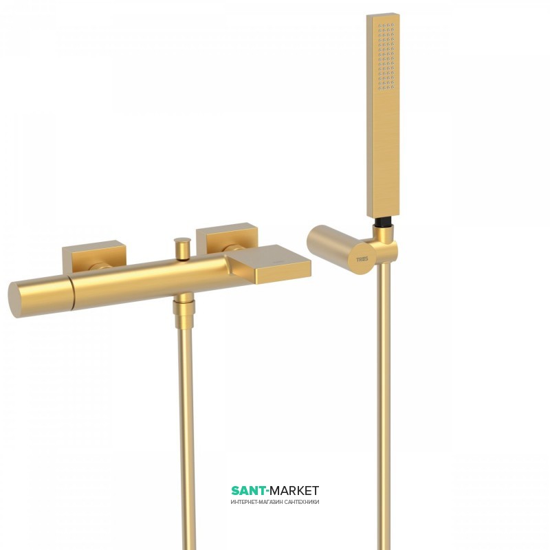 Смеситель для ванной Tres Project-Tres с каскадным изливом и ручным душем однорычажный золото матовый