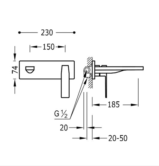 1) Смеситель для ванной Tres Slim colors однорычажный настенный золото