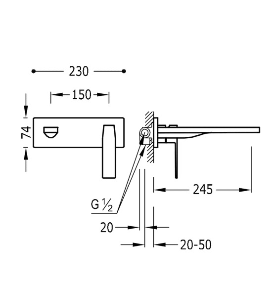 1) Смеситель для ванной Tres Slim colors однорычажный настенный сталь