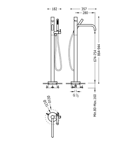 - Смеситель для ванны отдельностоящий с двумя независимыми регуляторами