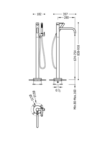 - Смеситель для ванны отдельностоящий с двумя независимыми регуляторами