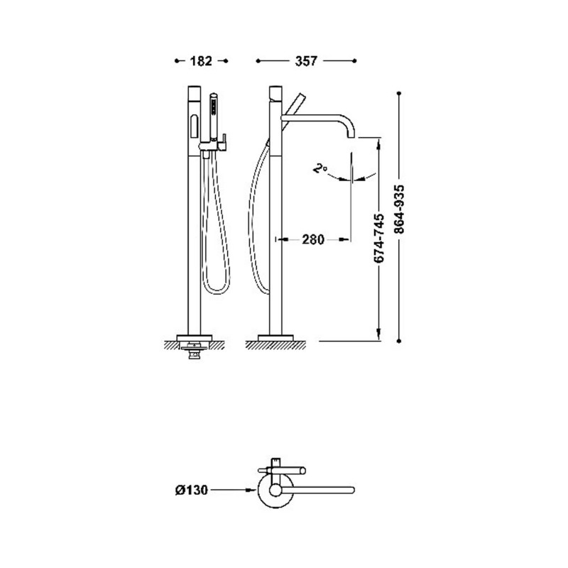 Смеситель для ванной Tres Study Exclusive напольный с душевым набором матовый белый