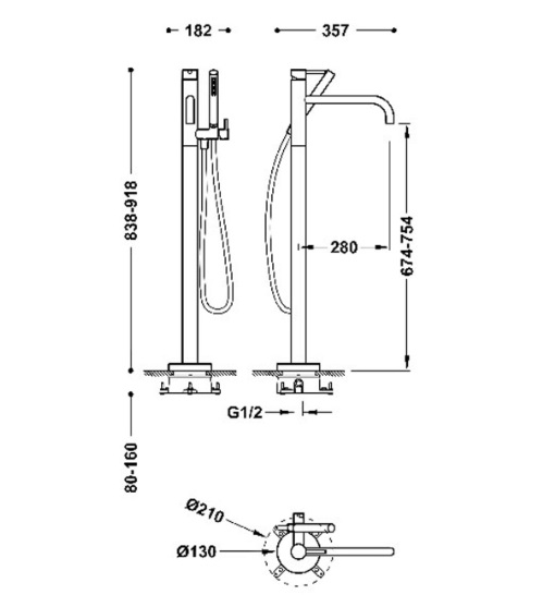 Смеситель для ванной Tres Study Exclusive напольный с душевым набором металлик черный