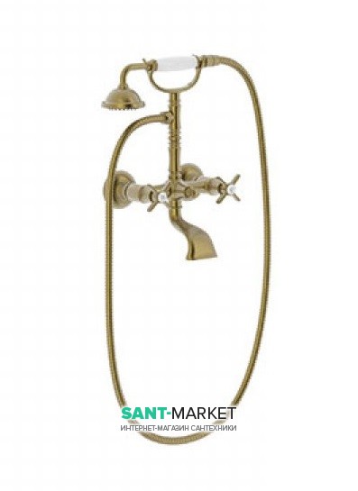 Смеситель для ванной Tres Tres-Сlasic с ручным душем состаренная латунь матовая