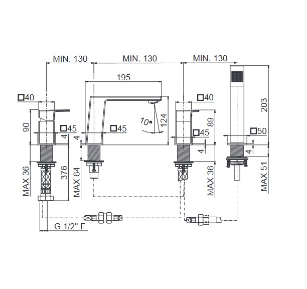 Смеситель на борт ванны Vema Lys на борт ванны с ручным душем хром