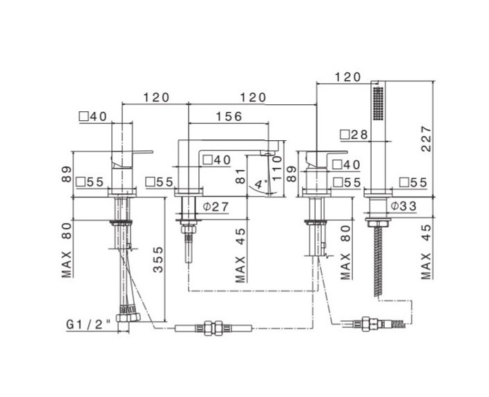Смеситель на борт Vema Tamesis с ручным душем хром
