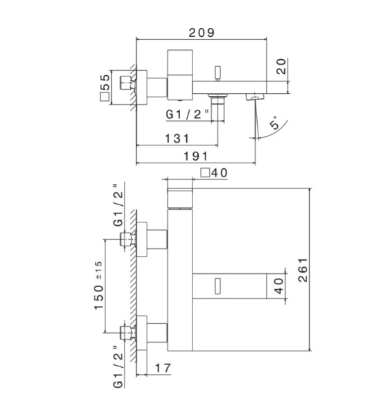 1) Смеситель для ванной Vema Tamesis однорычажный хром