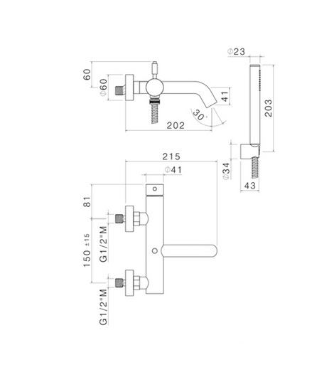 Смеситель для ванной Vema Tiber steel с ручным душем нержавеющая сталь