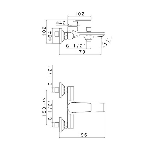 1) Смеситель для ванной Vema Timea однорычажный черный матовый