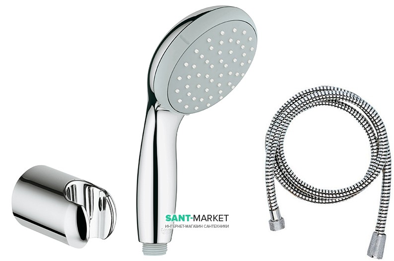 Однорычажный смеситель GROHE Eurosmart New 33302002 имеет в своем комплекте душевой гарнитур Relexa, состоящий из лейки, держателя и душевого шланга.