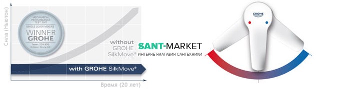 Теперь смесители серии GROHE Eurosmart New оснащены новыми картриджами размером 35 миллиметров, с технологией плавного перемещения рычага GROHE SilkMove®.