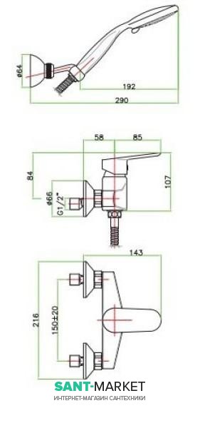 Смеситель для душа с лейкой держателем и шлангом Fiore KEVON CHIC хром 81CR6510