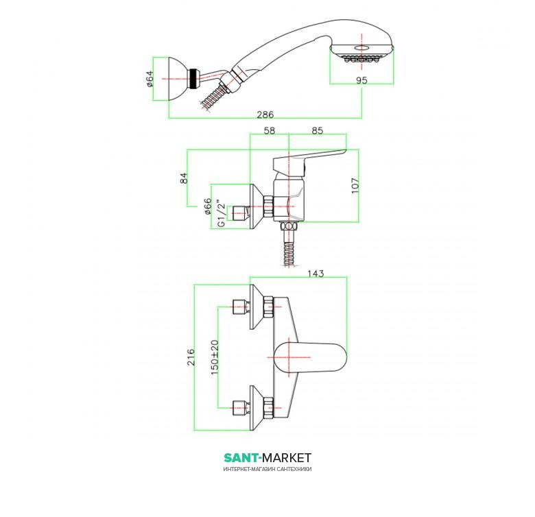 Смеситель для душа с лейкой держателем и шлангом Fiore KEVON CHIC хром/белый 81CR6510