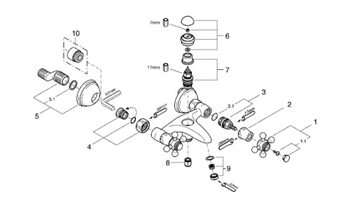 GROHE SilkMove® керамический вентиль, GROHE StarLight® хромированная поверхность, регулировка расхода воды, возможность установки мин. расхода 2,5 л/мин., автоматический переключатель: ванна/душ, встроенный обратный клапан в душевом отводе, 1/2" скрытые S-образные эксцентрики, аэратор с функцией SpeedClean, ограничитель температуры, с защитой от обратного потока