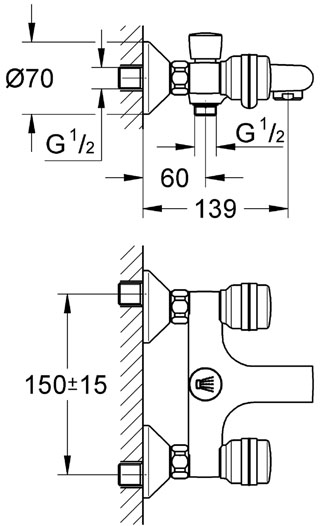 Смеситель двухвентильный для ванны с коротким изливом Grohe коллекция Supra хром 25483000
