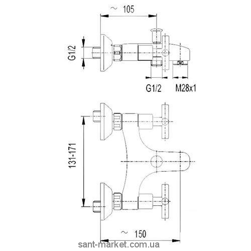 Смеситель двухвентильный для ванны с коротким изливом KFA коллекция Symetric хром 344-010-00