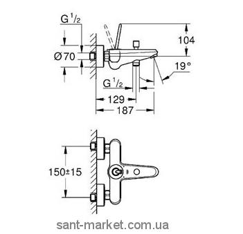 Смеситель с джойстиком для ванны с коротким изливом Grohe коллекция Eurodisc Joy белый 23431LS0