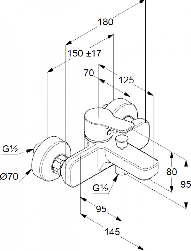 Смеситель для ванны Kludi Pure&Easy однорычажный, хром