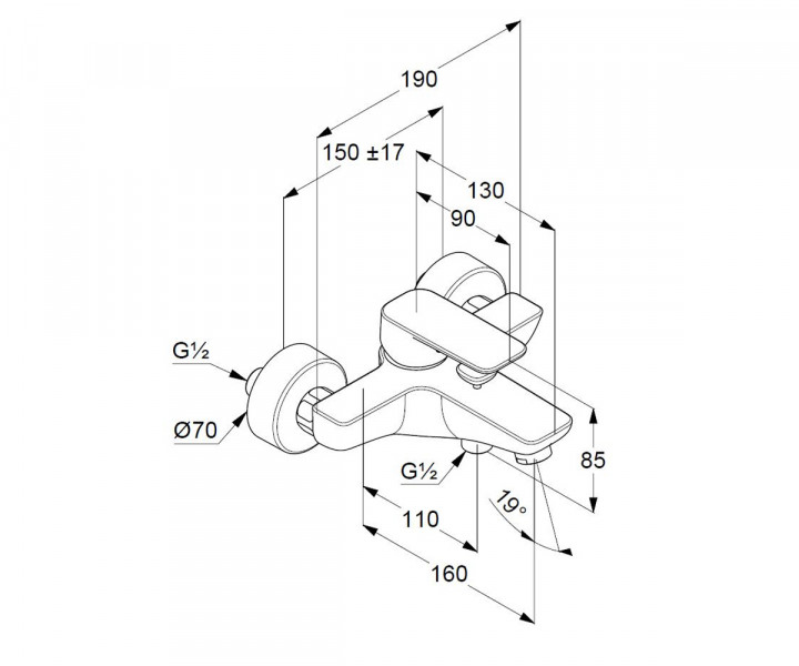 1) Смеситель для ванны Kludi Pure&Style однорычажный, хром 406810575